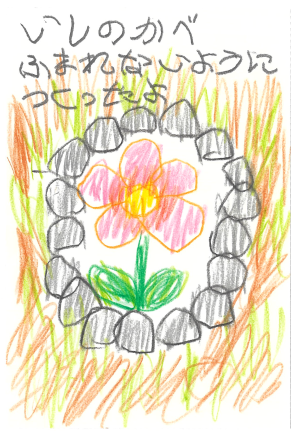 小さな花を守ろうとした気持ちが、とても素敵です。いつまでも、やさしい気持ちを大切にしてください。(おかもと)