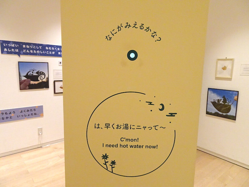 第1会場となるアンパンマンミュージアム4Fの企画展示室では、リトさん初のストーリー絵本である『まねっこカメレオン』(講談社)掲載の内容を中心に、日本全国をめぐるご当地葉っぱ作品「葉っぱの小旅行」と、高知のご当地作品を初公開!さらに楽しい仕掛け展示もあります。